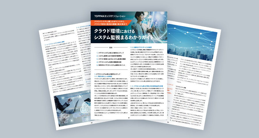 まるわかりガイドクラウドシステム導入のポイントから、クラウド特有の監視の課題・解決策まで詳しく解説します。クラウドの導入を検討中のお客さまには、有益な情報が盛りだくさんです。ぜひ、ダウンロードしてご一読ください。