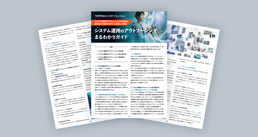 まるわかりガイドシステム運用をアウトソーシングする際の留意点や、契約のポイントを詳しく解説しています。システム運用のアウトソーシングを検討中のお客さまには有益な情報が盛りだくさんです。ぜひ、ダウンロードしてご一読ください。
